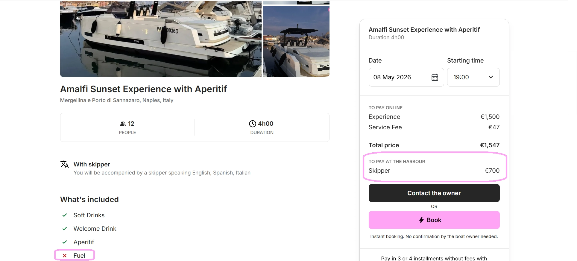 An Experience is a ready-to-book activity, dedicated to daily rentals with a skipper, where everything is clearly defined:
