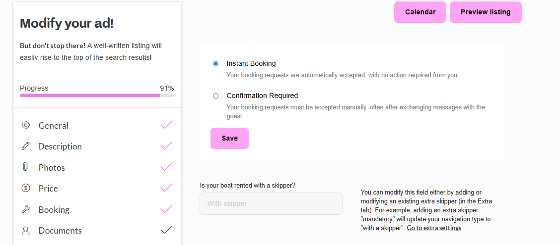 - Ensure your listing is complete and accurate (boat details, pricing, rules, etc.)