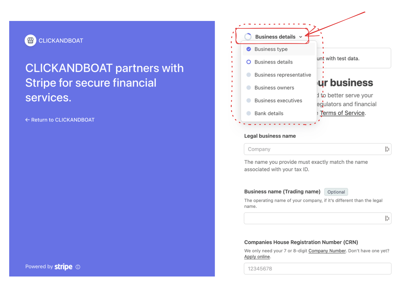 Pour vous offrir une sécurité maximale et des versements plus rapides, Click&Boat s'est associé à Stripe Connect. Ce processus de vérification obligatoire — souvent appelé KYC (Know Your Customer) ou KYB (Know Your Business) — est une exigence légale standard pour les mouvements de fonds internationaux.
